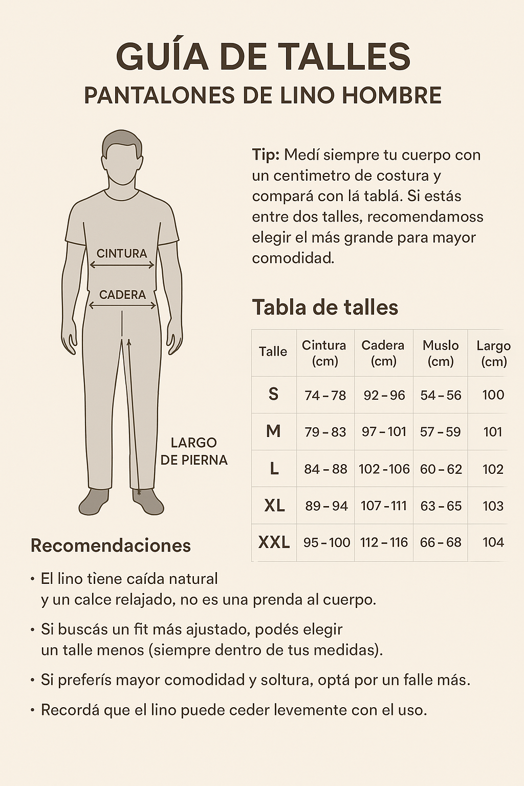 Comodidad asegurada: El lino es transpirable, evita la sudoración excesiva y brinda libertad de movimiento.